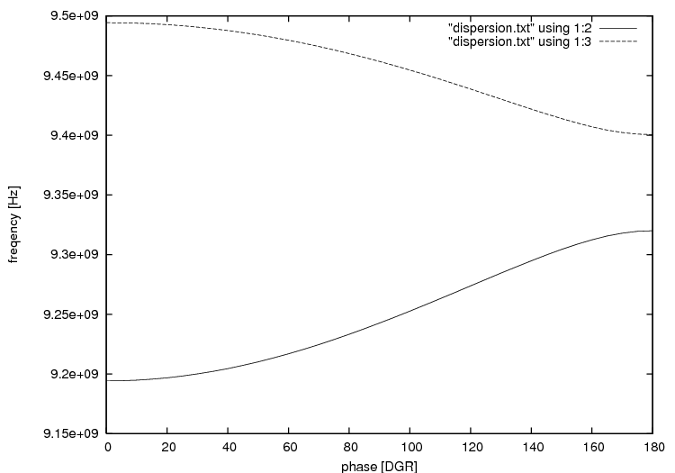 この分散曲線は等価回路などを使い,ある程度予想することはできるが数値計算で求められたものはあまりない.現在標準的に使われているSUPERFISHを使っても近似的にしか求められないだろう.