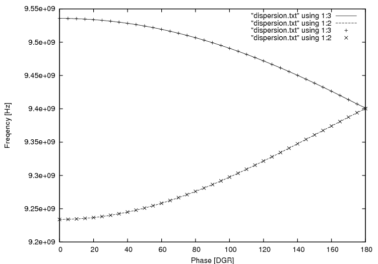 以下はカップリングキャビティが0.1mm小さい場合の分散曲線である。