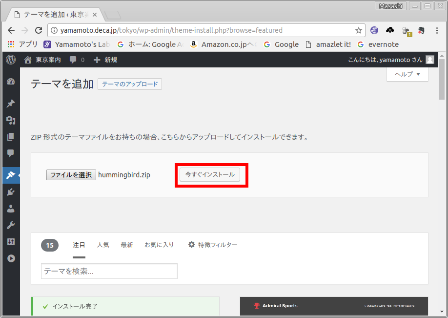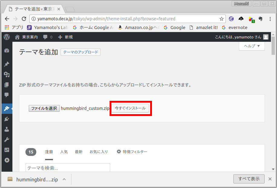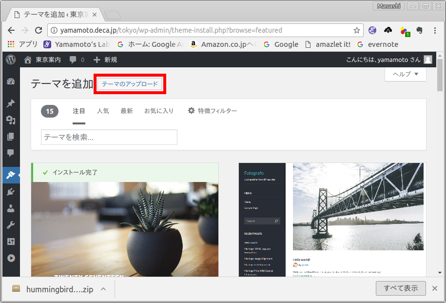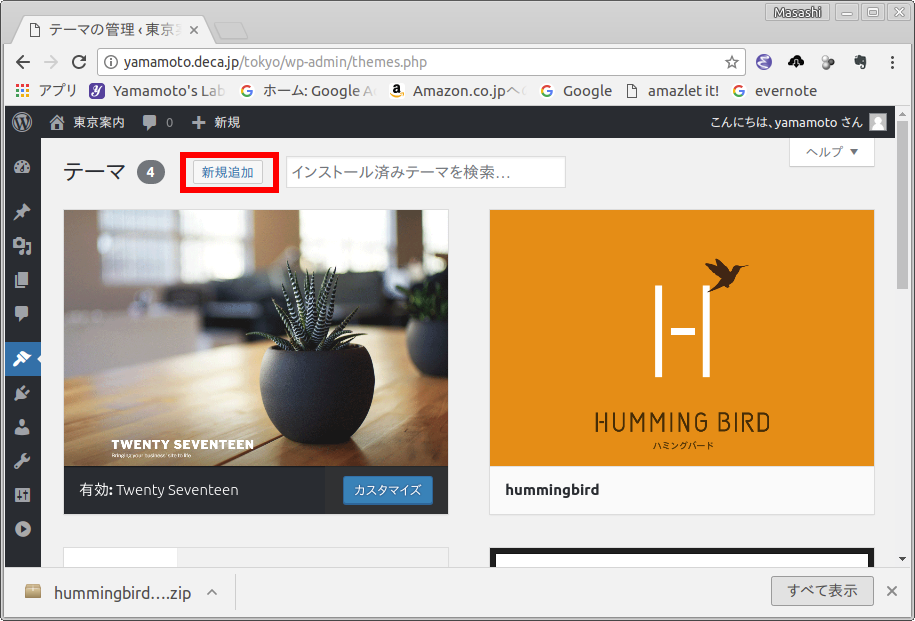Hummingbird (親テーマ) とその子テーマのインストール方法を示します.