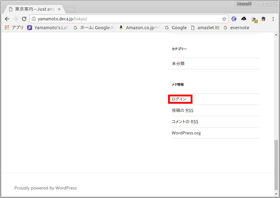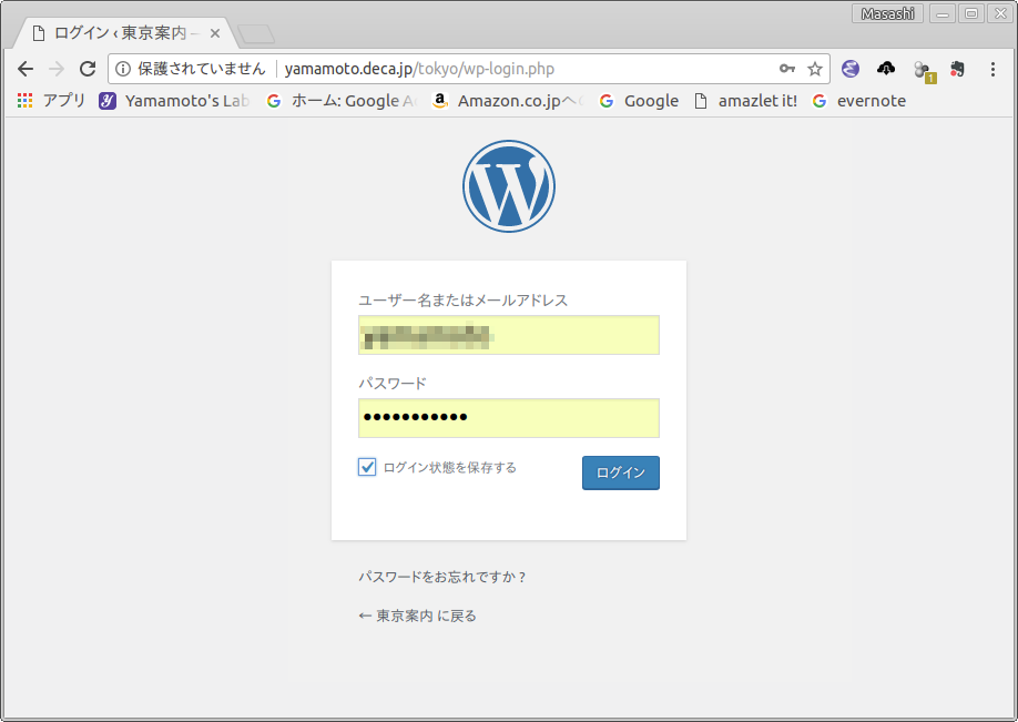 - もし,ログイン画面が現れたら,WordPress のユーザー名とパスワードをタイプし,ます.ログインをしたままであればs,ログイン画面は現れません.