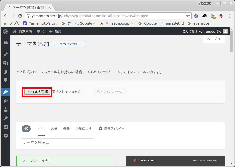 - テーマの追加の画面が現れますので,テーマのアップロード をクリックします.[参照: 図23]