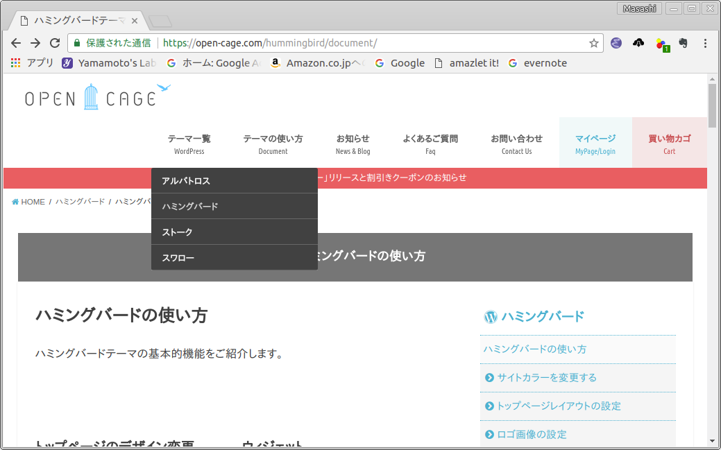 - Hummingbird を販売しているOPENCAGEのトップページ ブログ向けWordPressテーマ「OPENCAGE」 に行きます.