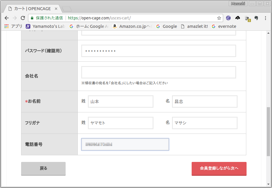 - お客様情報の「会員ではない方はこちら」を記載します.記載内容は忘れないようにメモします.そして,会員登録しながら次へ をクリックします(図4).