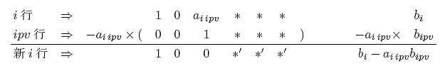 i=4,ipv=3が完了したときである。この行列を良く見ると、係数行列