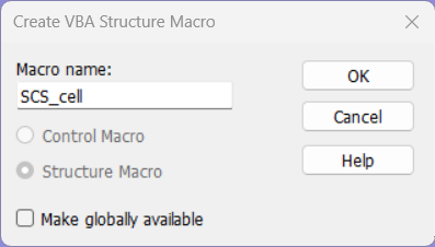 - すると,ダイアログ: Create VBA Structure Macro が現れます(図1).ここで,